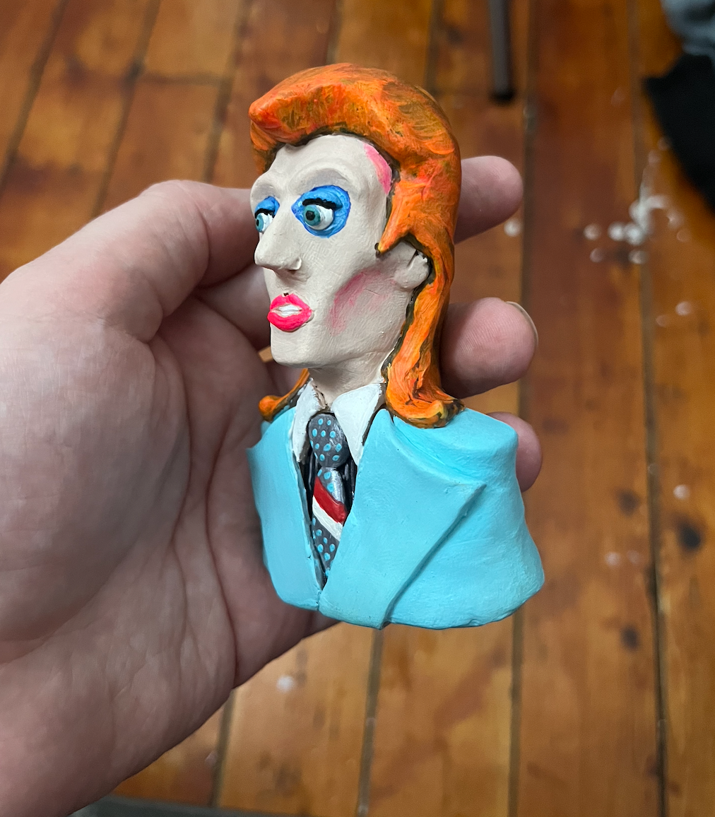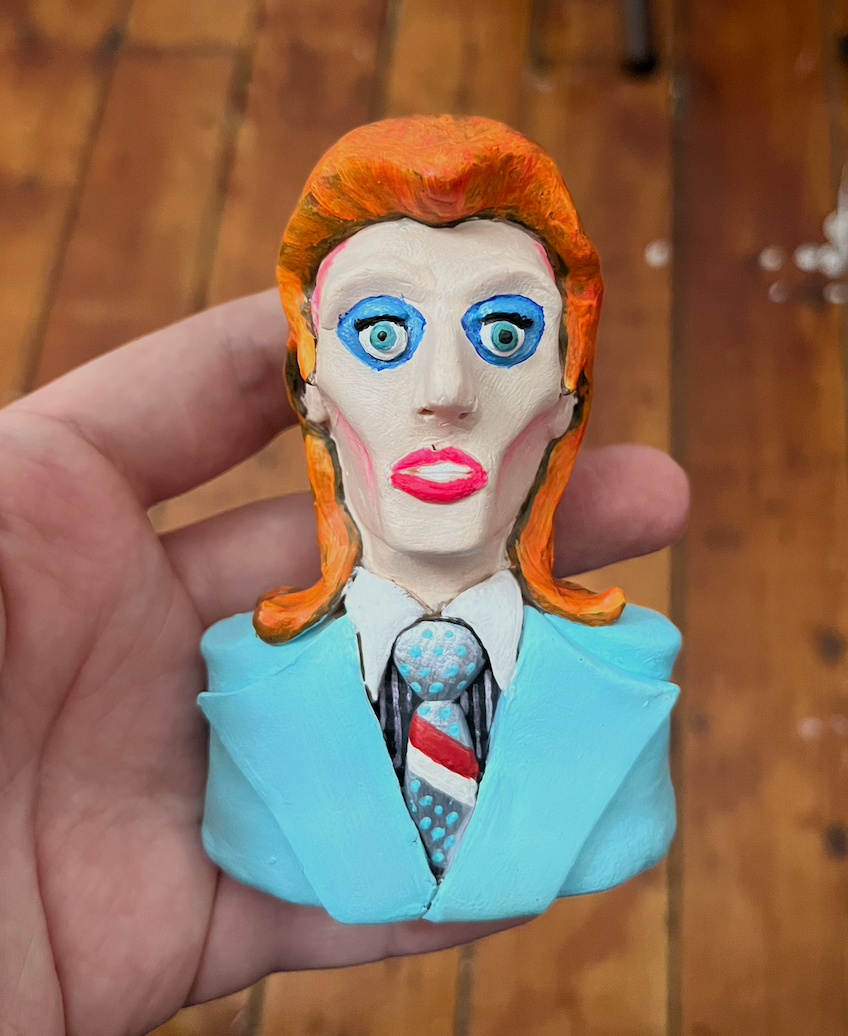 This original polymer clay sculpture is inspired by the legendary David Bowie from the music video for Life On Mars?