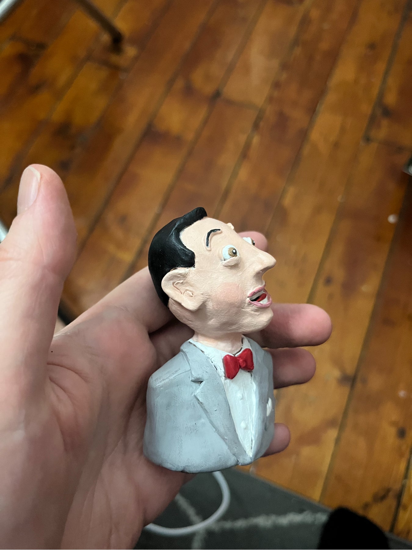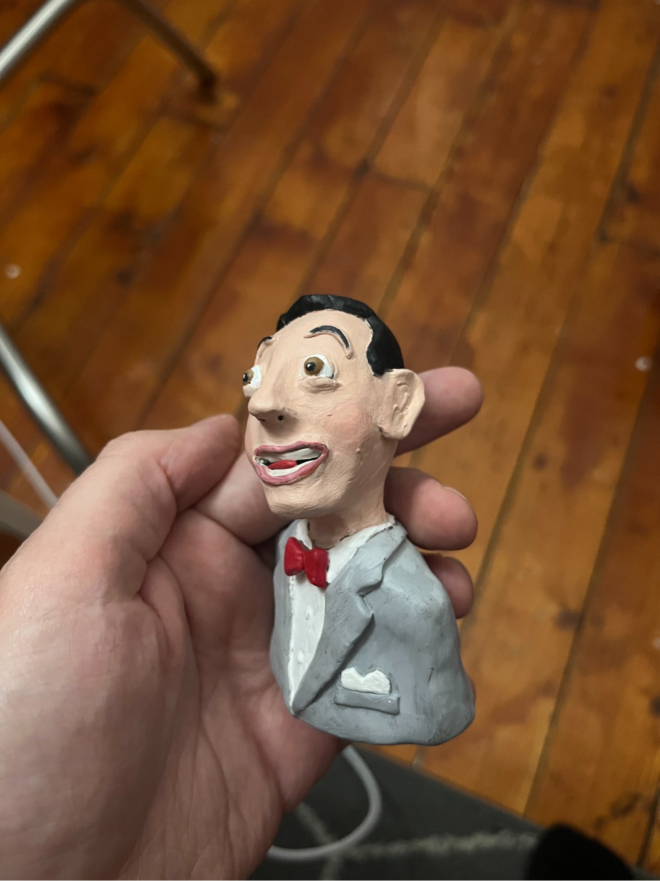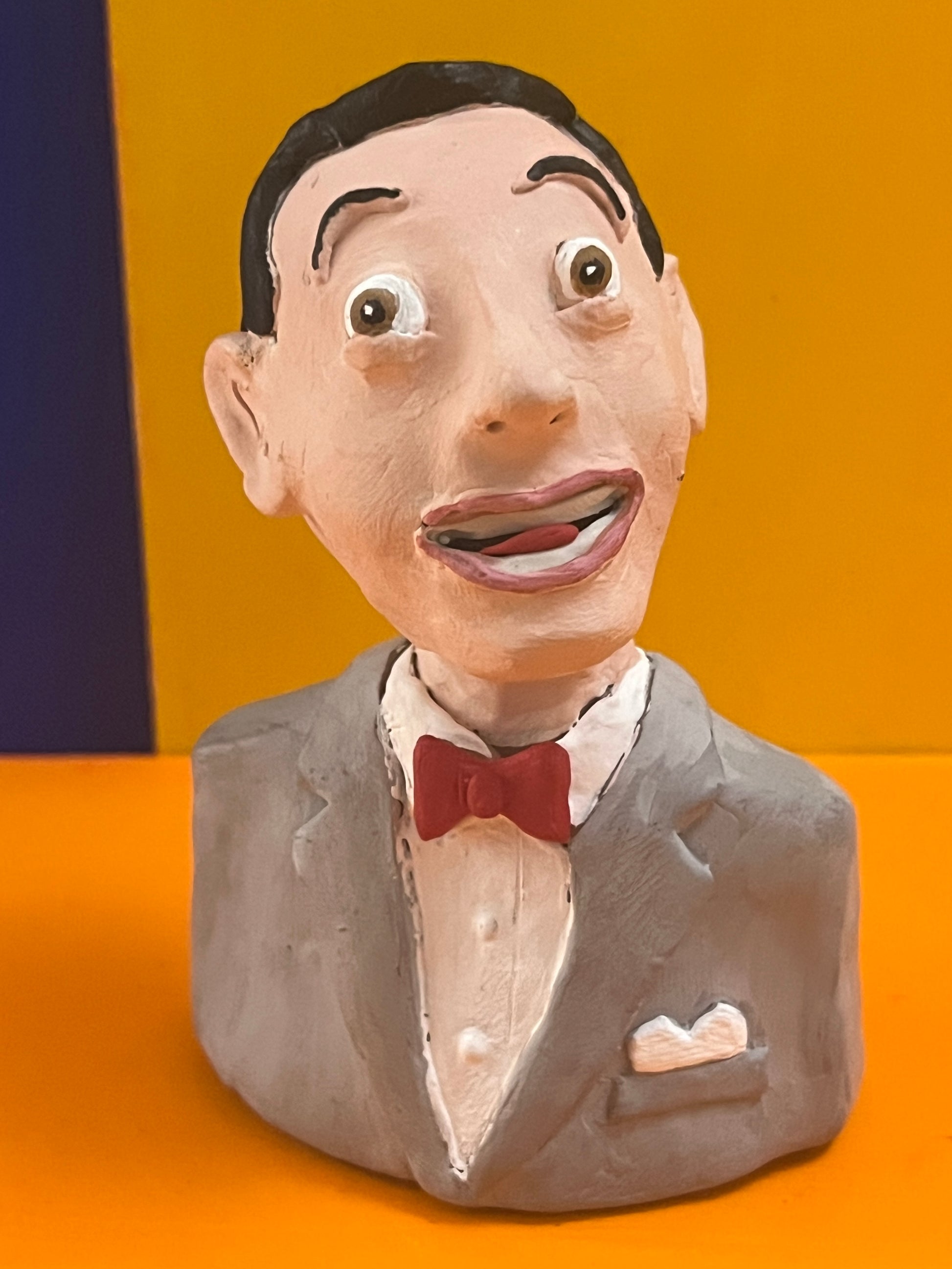 This original polymer clay sculpture is inspired by the legendary Pee-Wee Herman.