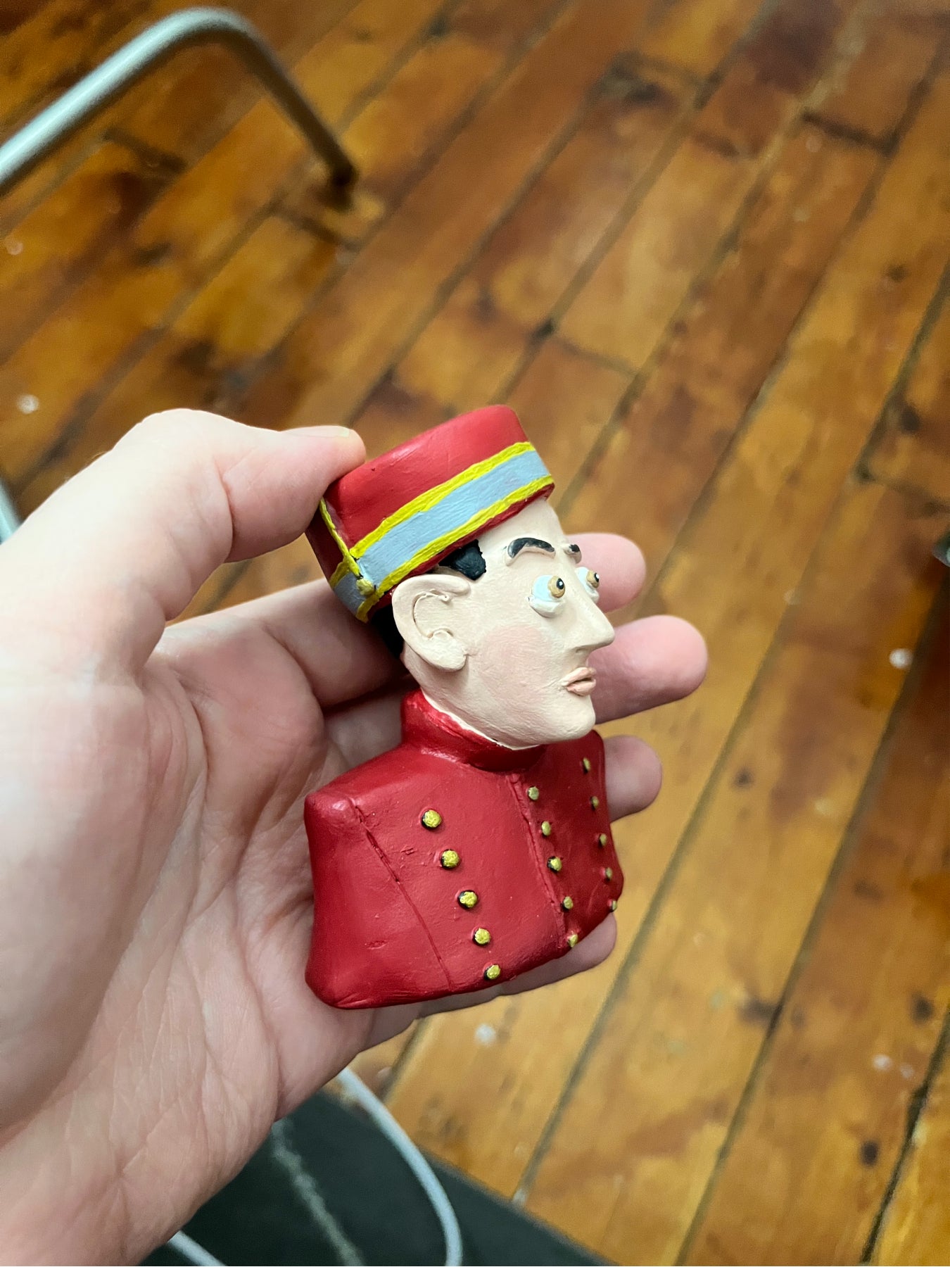 This original polymer clay sculpture is inspired by the legendary Pee-Wee Herman in the cult classic movie, Pee-Wee's Big Adventure.