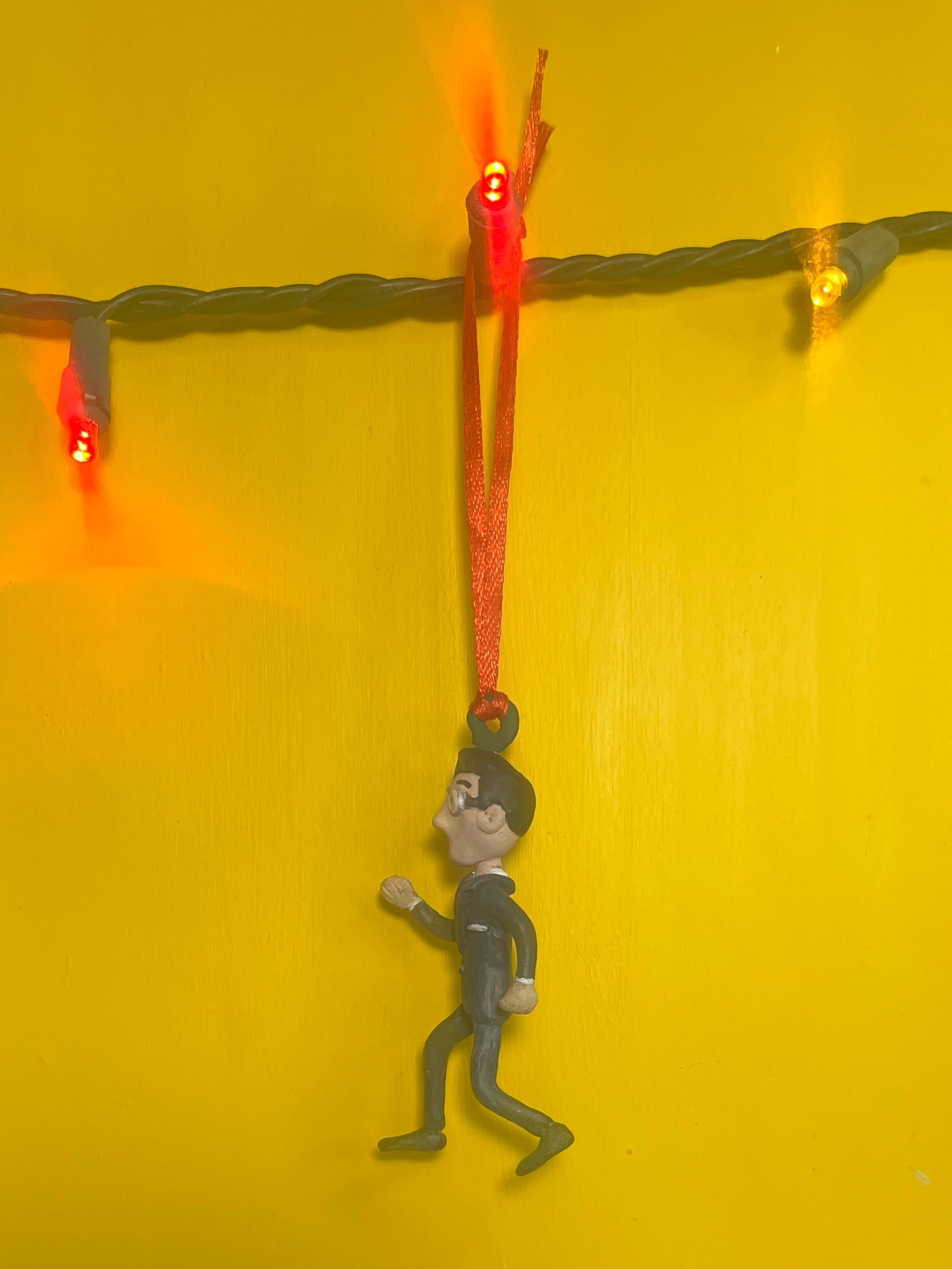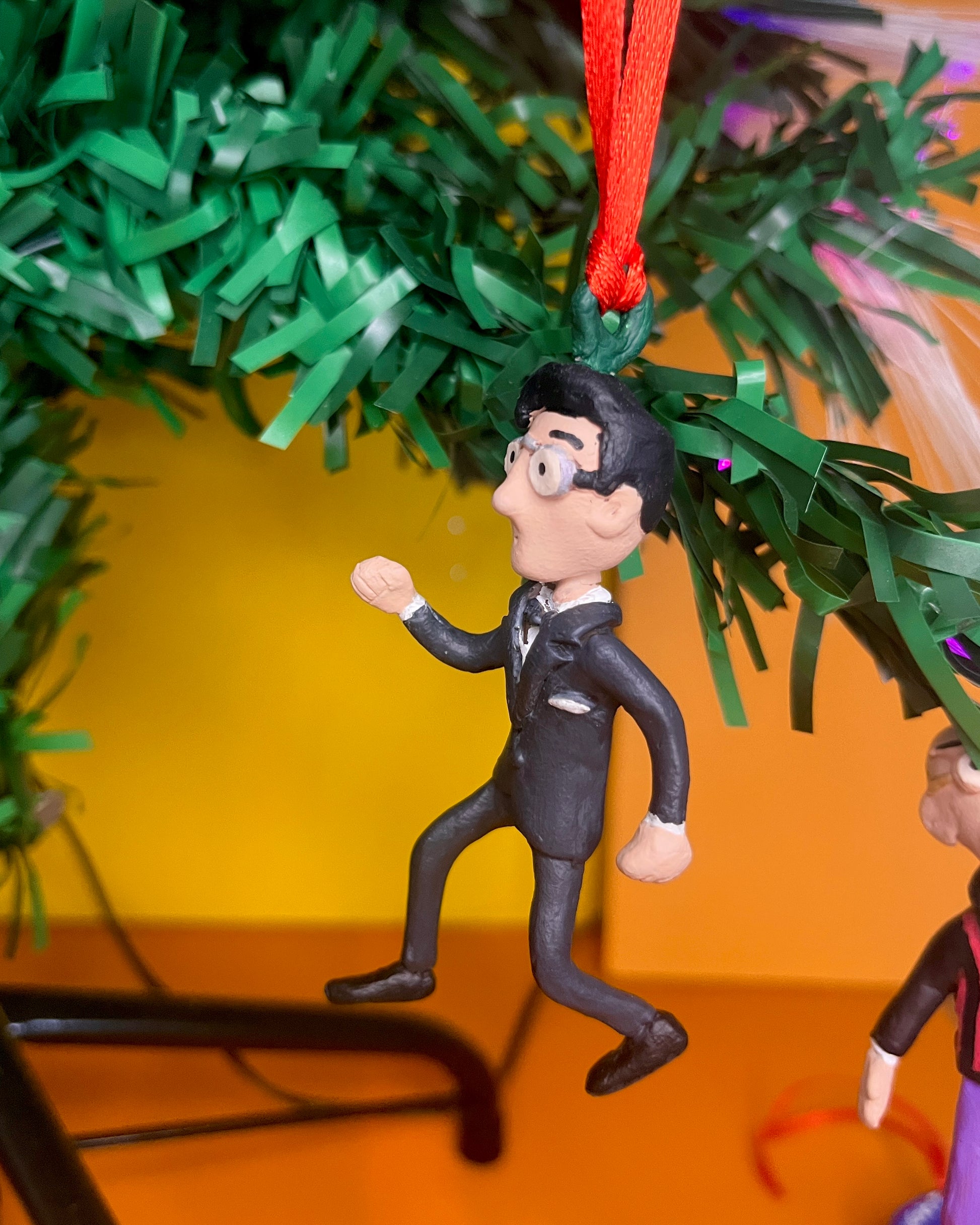 This original polymer clay ornament is inspired by David Byrne from the iconic Talking Heads music video, Once In A Lifetime.