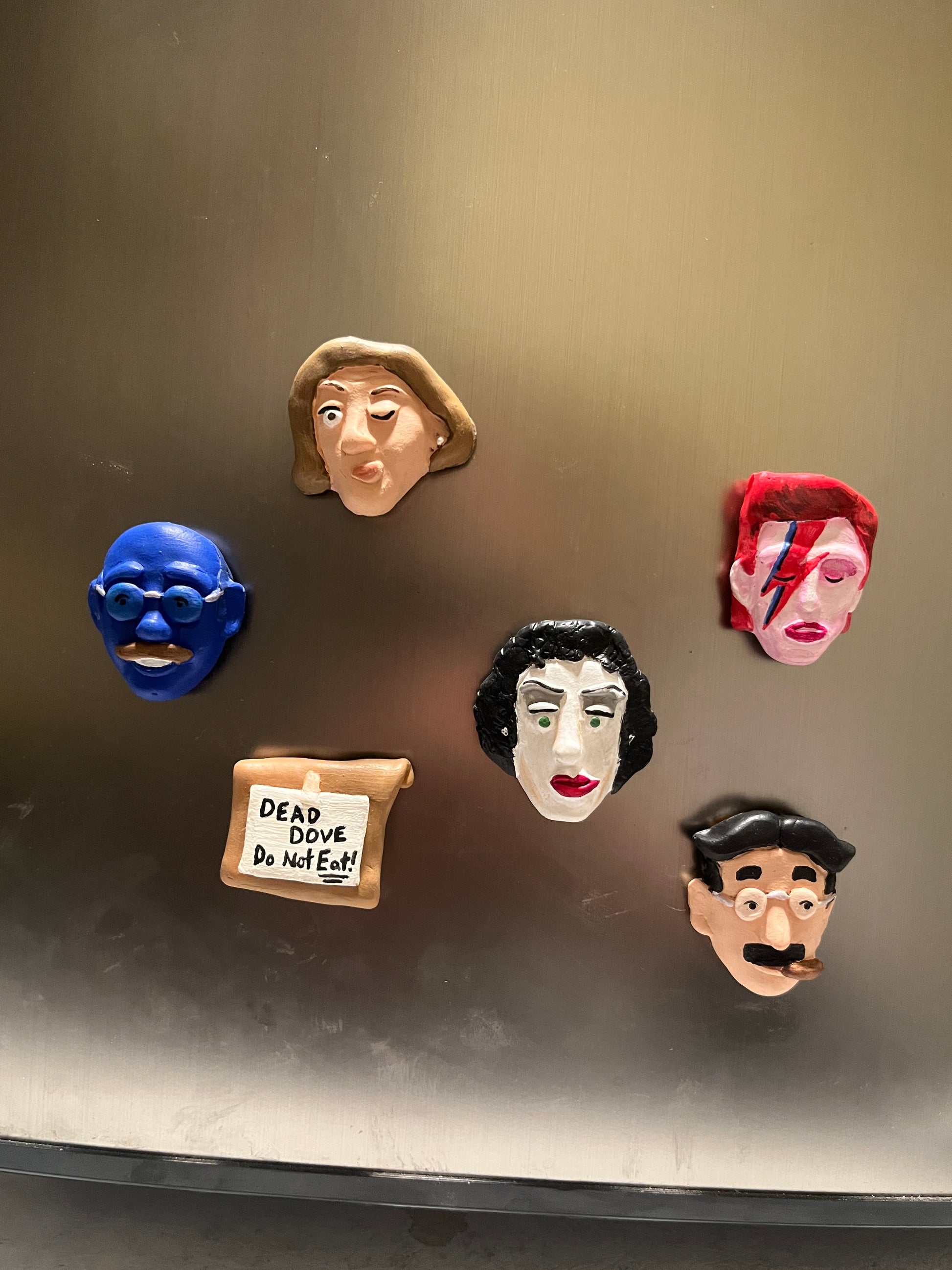 Each fan art magnet is handmade by the artist (that's me, hi!). They are cast from a mold of the handcrafted original, individually hand-painted—I blue them myself—and sealed with ultra-matte varnish.